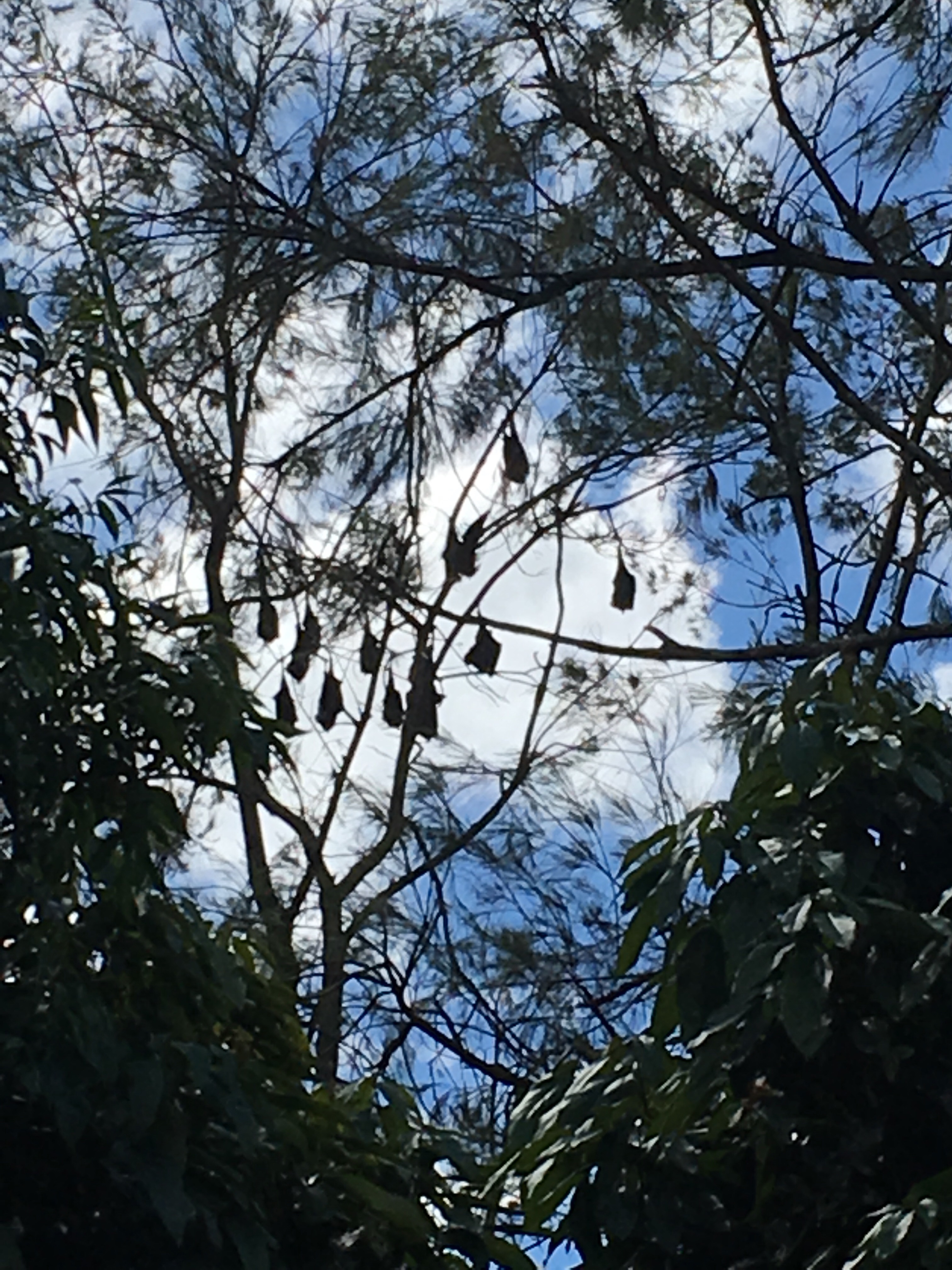 These are grey headed flying foxes and they say they are a threatened species which is hard to believe when you see thousands of them in flight.