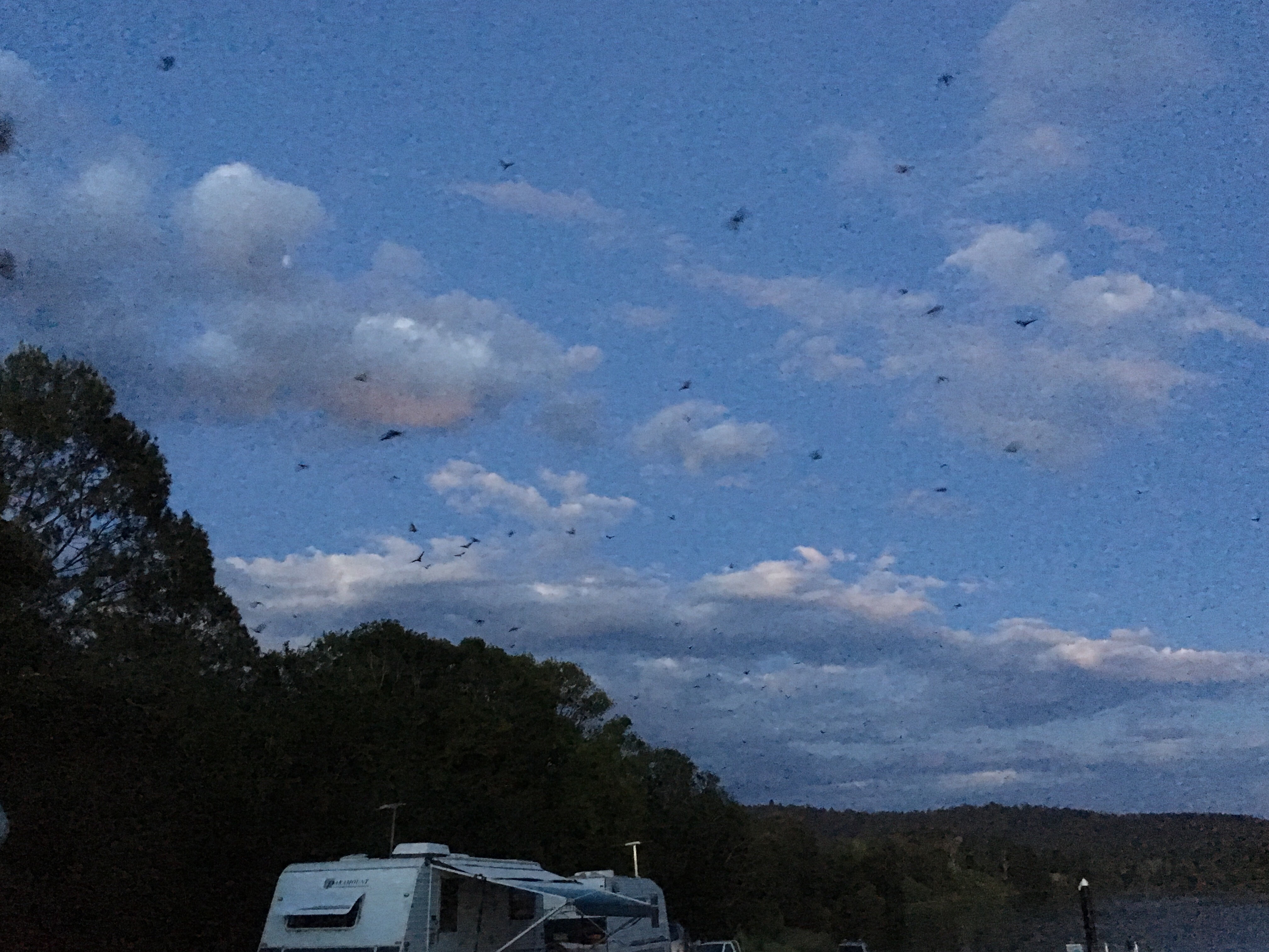 They’re sort of cute – until you hear them squarking all day, smell them when they are en masse as they are in Wingham Brush, and then have to clean their poop off your RV before it eats through the duco!.