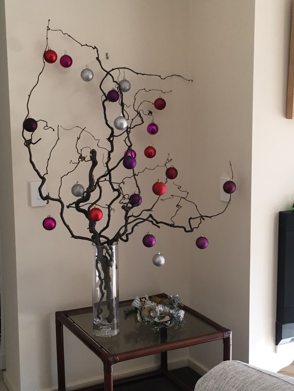 My house sitting hostess, Lee, has used these contorted twigs to great effect to create a Christmas Tree with a difference.