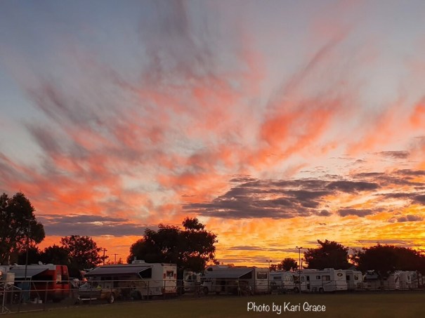 It’s a massive organisational challenge also. Over 900 RV’s have arrived in the small Western Queensland town of Barcaldine (bar-call-din) and been parked at the Showgrounds awaiting the formation of The Longest Line on Sunday.