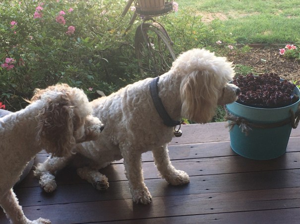But this post is really all about Flynn. He doesn’t let his blindness stop him from playing with his ball and he creates new challenges by sending the ball in different directions so he listens, then sniffs it out wherever it goes. Up and down the steps is the main game though!