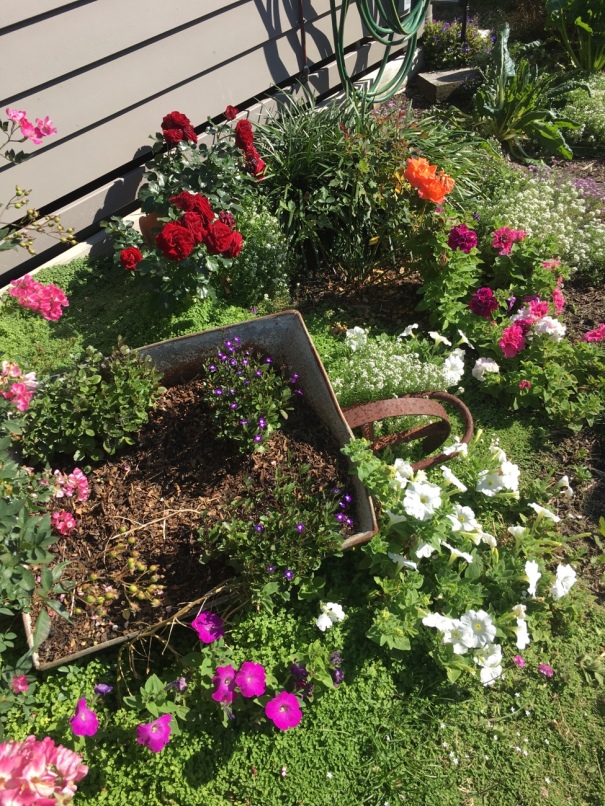 Flowers, vegetables and fruit trees share the space with quirky bits and pieces that make for an adventure of discovery as I wander around the garden.