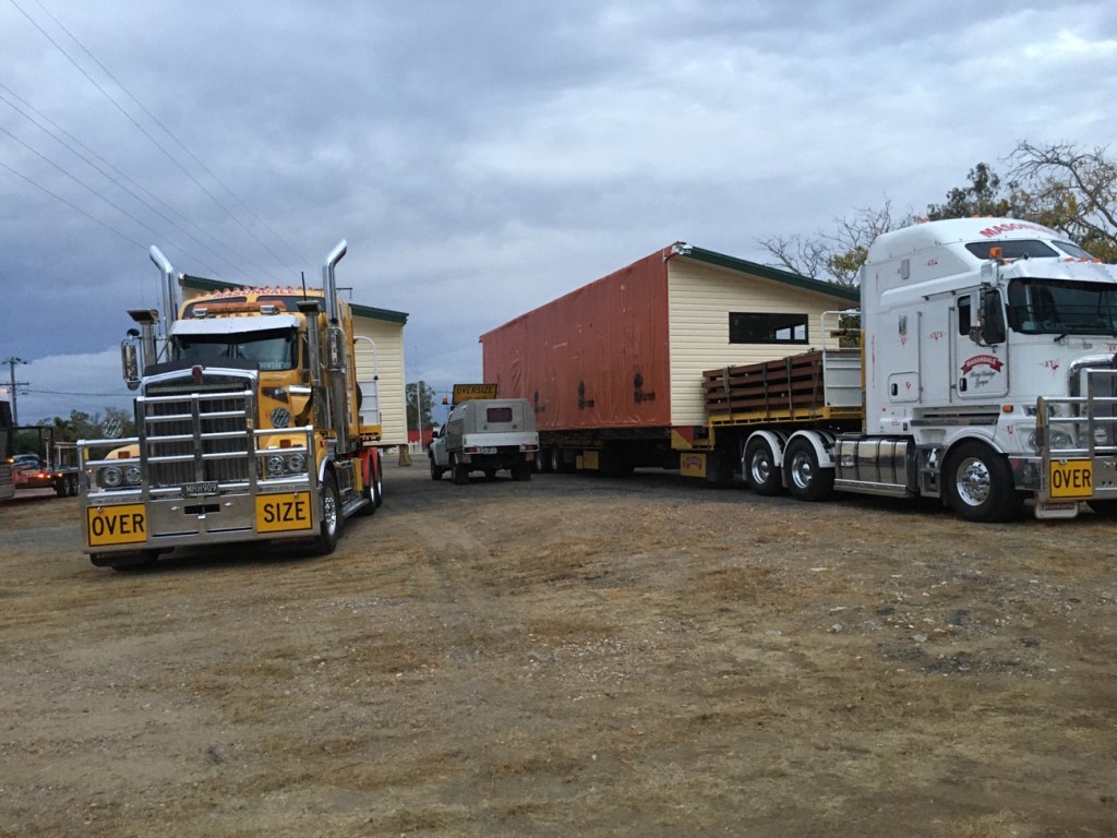 As I was now way behind the tagalong group I stopped in a paddock across from the Bajool pub for the night, sharing the campground with huge trucks hauling buildings to a new location.