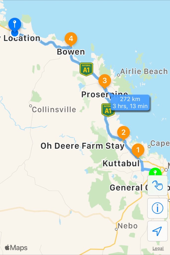 Most of us needed to shop so we were off bright and early to Proserpine to stock up our cupboards and fuel up for the next stage of our journey. Today we are travelling about 200kms, which is a bit of a change for us as around 50kms is more the norm. 🤣🤣🤣. We joke about the massive distances we’ve done each day but hey, the journey is what it’s all about!