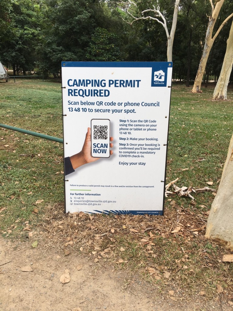 How times have changed with Covid! You now have to register with Townsville Council to stay at the park – all part of making contact tracing easier and restricting numbers.