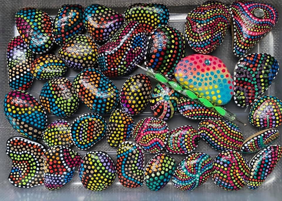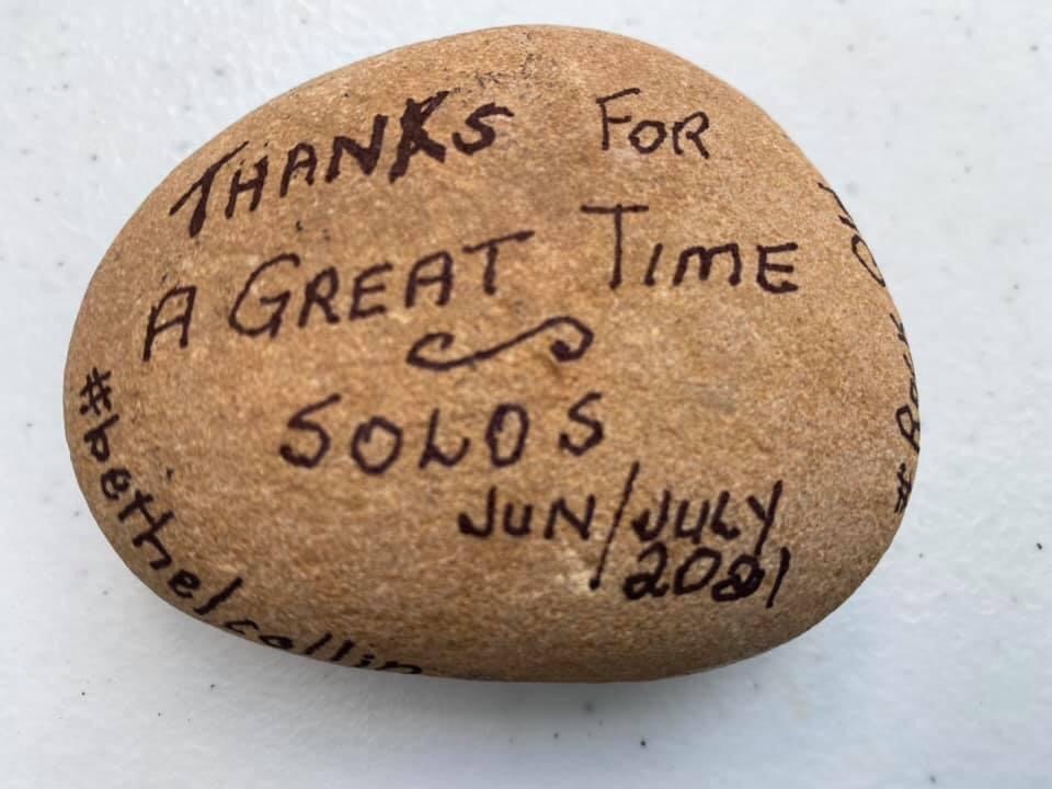 Bethel, one of our very creative members, painted 80 rocks that were placed around the grounds for people to find. Love the little one I found that has become an instant treasure.