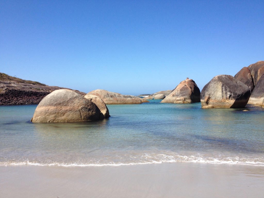 Elephant Cove is a favourite because of the way I found it! After viewing Elephant Rocks, so named because of their shape like a herd of elephants, I kept walking down the track a little further and came across a narrow fissure between two large rocks. I squeezed through and this stunning, pristine cove was revealed. The sea, the sand, the giant boulders off shore- everything about it had instant appeal.