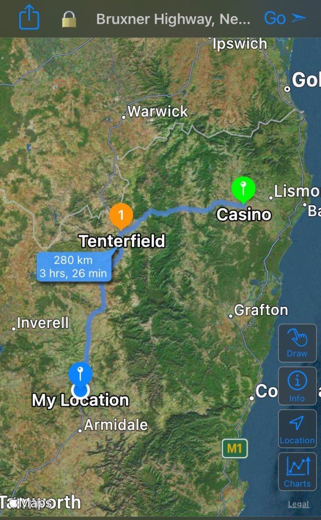 280kms is not an onerous driving day but I was tired after the last couple of days of transferring all my ‘stuff’ from Brutus to BF ( The Buttery Fly, my new Best Friend) – and the red wine I drank last night didn’t help 🍷