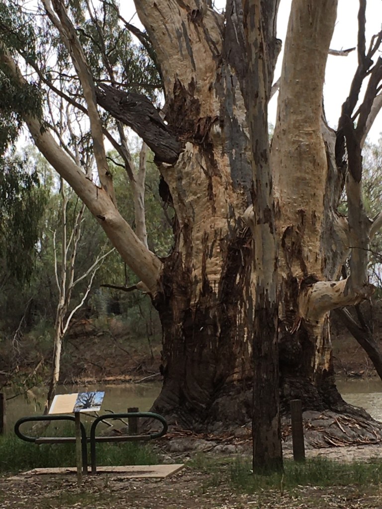 Before leaving my camp at Moulamein I thought I should look for The Big Tree that gave the rest stop its name. To my mind most of the river gums were big, some of the biggest I’ve seen, but the Big Tree was a giant!