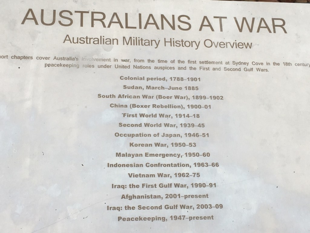 As the road winds its way the 600 metres to the top there are large signs identifying all the conflicts Australian Service Men & Women have been involved in, although Anzac Hill was originally dedicated to those who lost their lives in WW1.