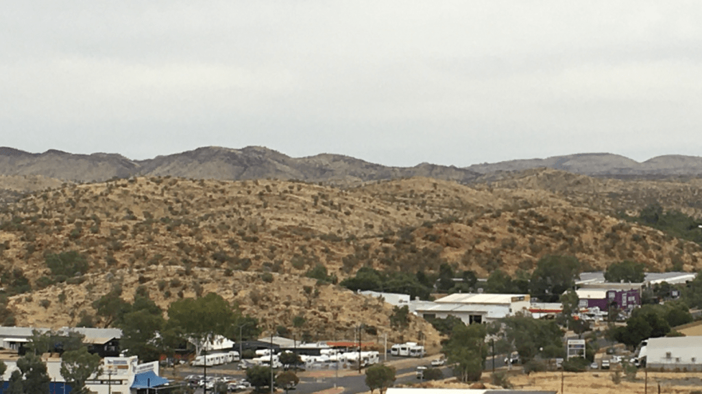 It was a grey day when I visited but looking out to the horizon it really highlighted how Alice Springs is nestled within the MacDonnell Ranges.