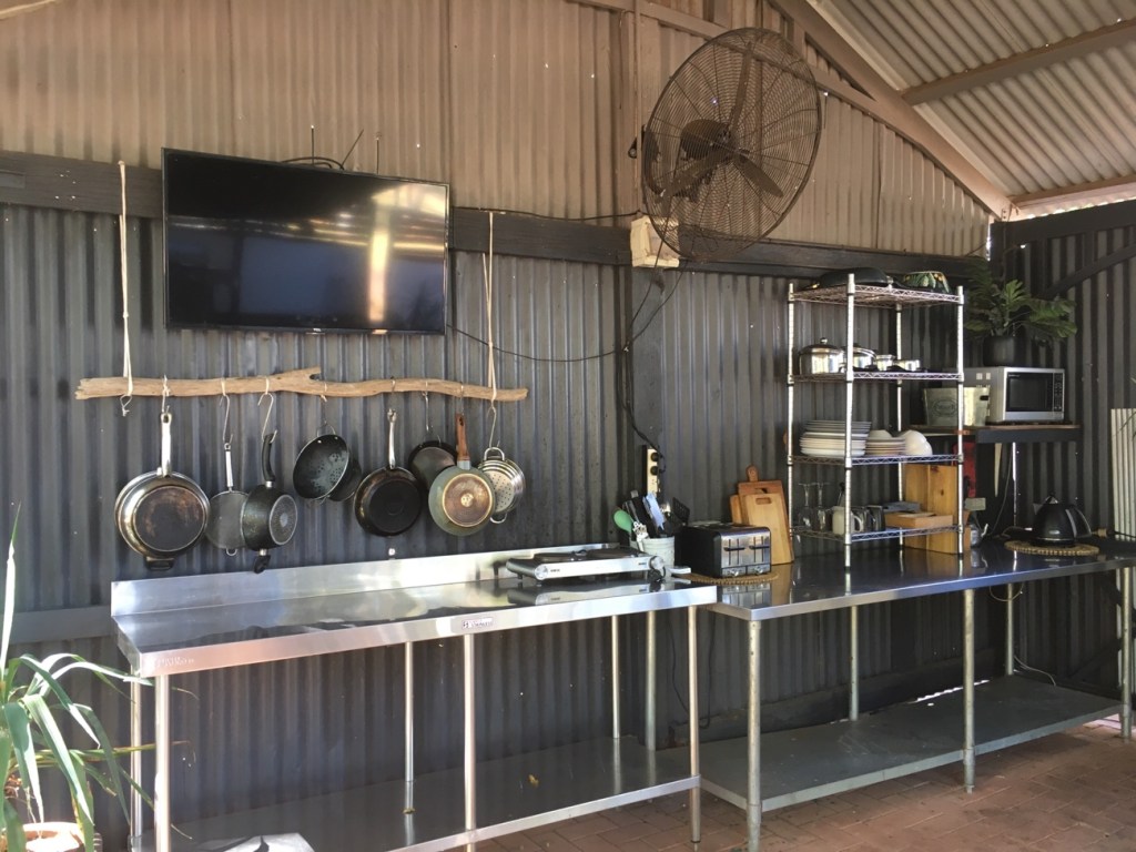The camp kitchen has all the basic requirements and is very well equipped but more than that is presented so well with a home stylists touch in its rustic setting.