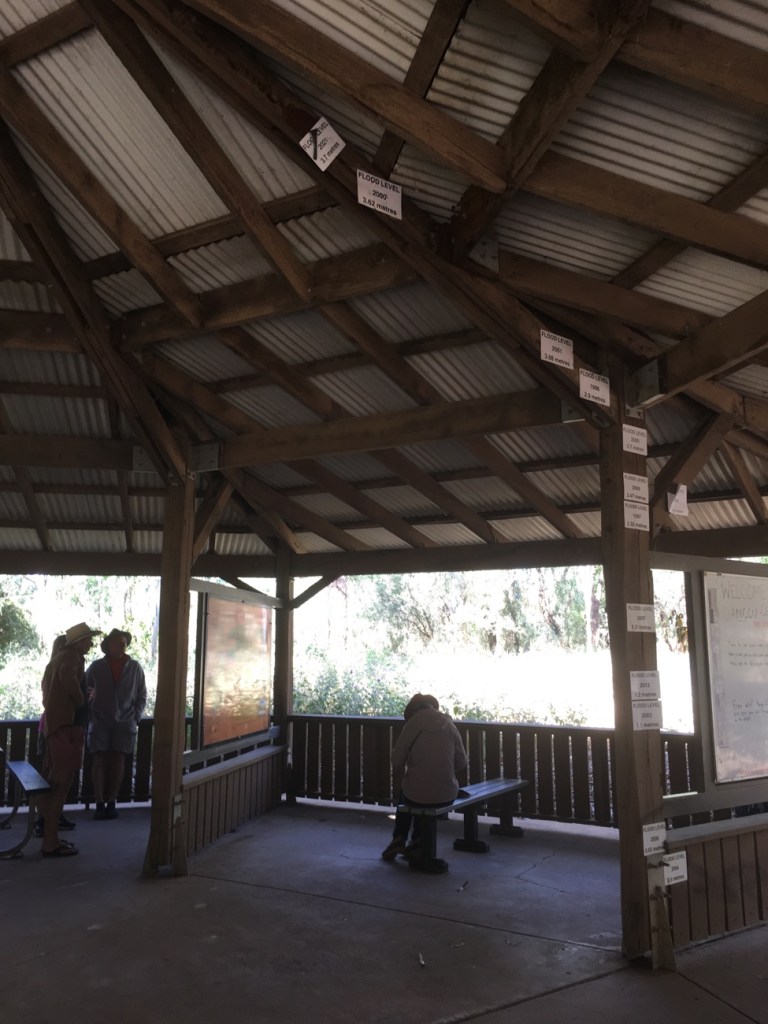 These marks in the information shelter show some of the recent levels. It’s hard to imagine this building being 2 metres under water!
