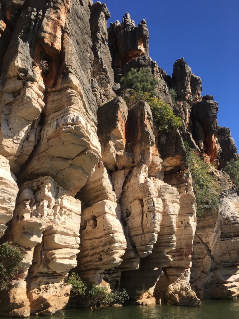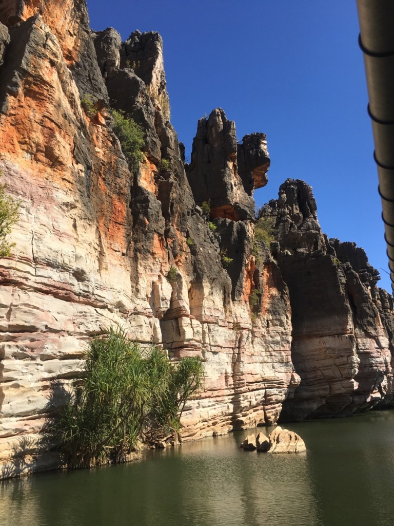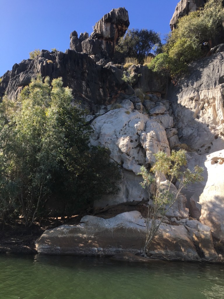 Geike Gorge was formed from a Devonian Reef that existed some 300 million years ago and when it receded it left these spectacular limestone cliffs and caves.