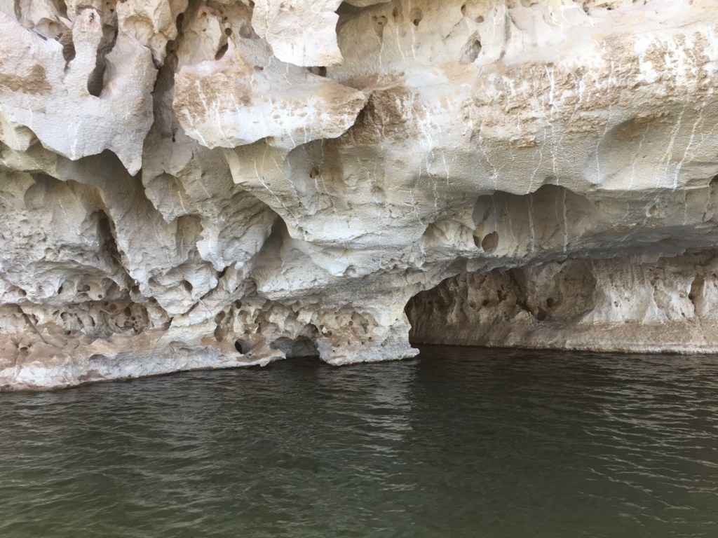 Somehow these trees that anchor themselves to the limestone survive the rushing torrents of flood waters and being submerged for weeks to emerge anew when the river recedes.