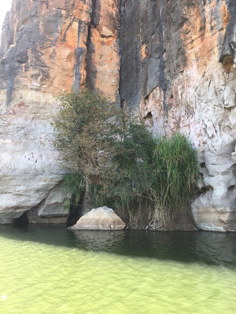 Little birds called Fairy Martins were swooping over the water and cliff faces gathering materials for their nests. Locals say that the level at which they build their nests indicates how high the flood waters will rise during the next wet season. They’re building them VERY high this year!