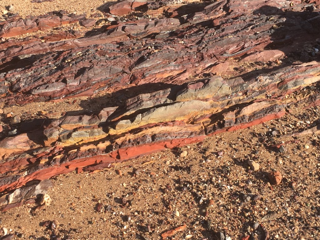 Although the beach was rocky we marvelled at the cliffs, the colours and the textures of the area.
