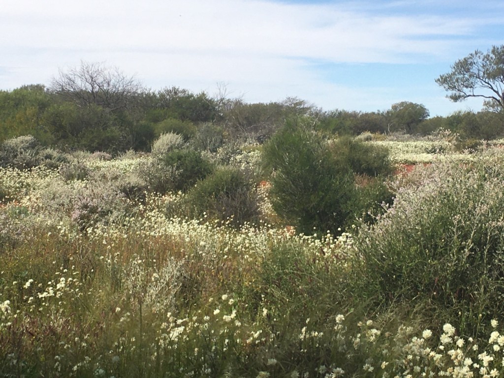 The contrast of the white flowers, the red earth and the green bushes was spectacular. So many white flowers it looked like snow covered ground. These scenes will only get better as we travel further into wildflower territory but our exploration is going to be put on hold for a couple of weeks while I attend a motorhome rally. I’m looking forward to sharing that experience with you too.