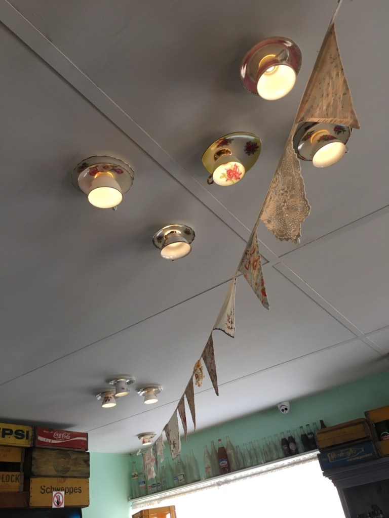 Our next stop was Mingenew, recommended as the place for a good meat pie. Sorry! I’ve had better! But the bakery had these quirky little light fittings made from pretty cups and saucers …