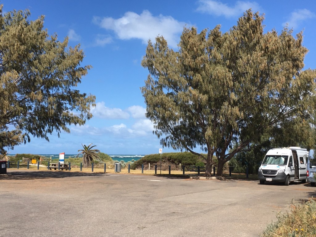 The local council in Geraldton recognise the value of tourists to the area and have allocated 6 small spaces for campervans to stay overnight. You can see the parking spaces in the car park in the next photo.