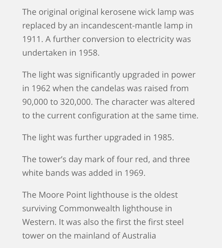 Originally powered by kerosene it has had several upgrades throughout its life, is still operational today and has been a guiding light in Geraldton since 1878.