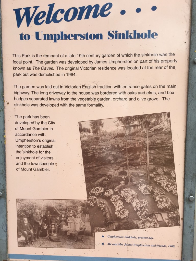 If you visit Mount Gambier you simply can’t miss seeing the Umpherston Sink Hole. It got its name from