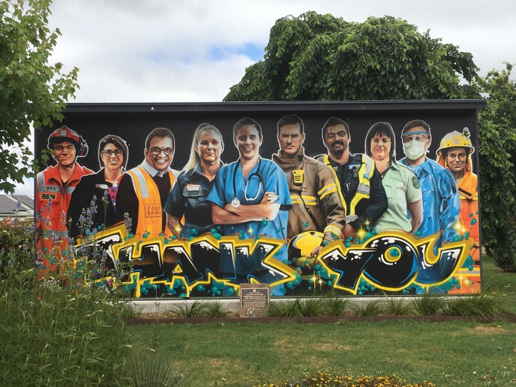 Yarram is now well-known for its murals, painted by street artist Heesco Khosnaran and the first one I saw of a bullock team reminded me of an Easter Parade in Yarram some years ago led by a such a team…. something very special to experience.