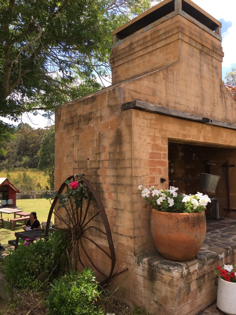 I’m not sure what this fireplace is used for but I think I’ll have to try and paint it one day – I love everything about it – the colours, the flowers and pots and the old wagon wheel. I just need to stop somewhere long enough now to get the paints out. 🎨