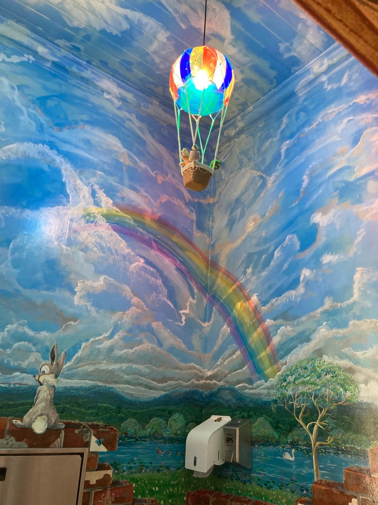 When you enter the nursing room it activates bird songs and croaking frogs and the lights hang from the ceiling in magical hot air balloons.
