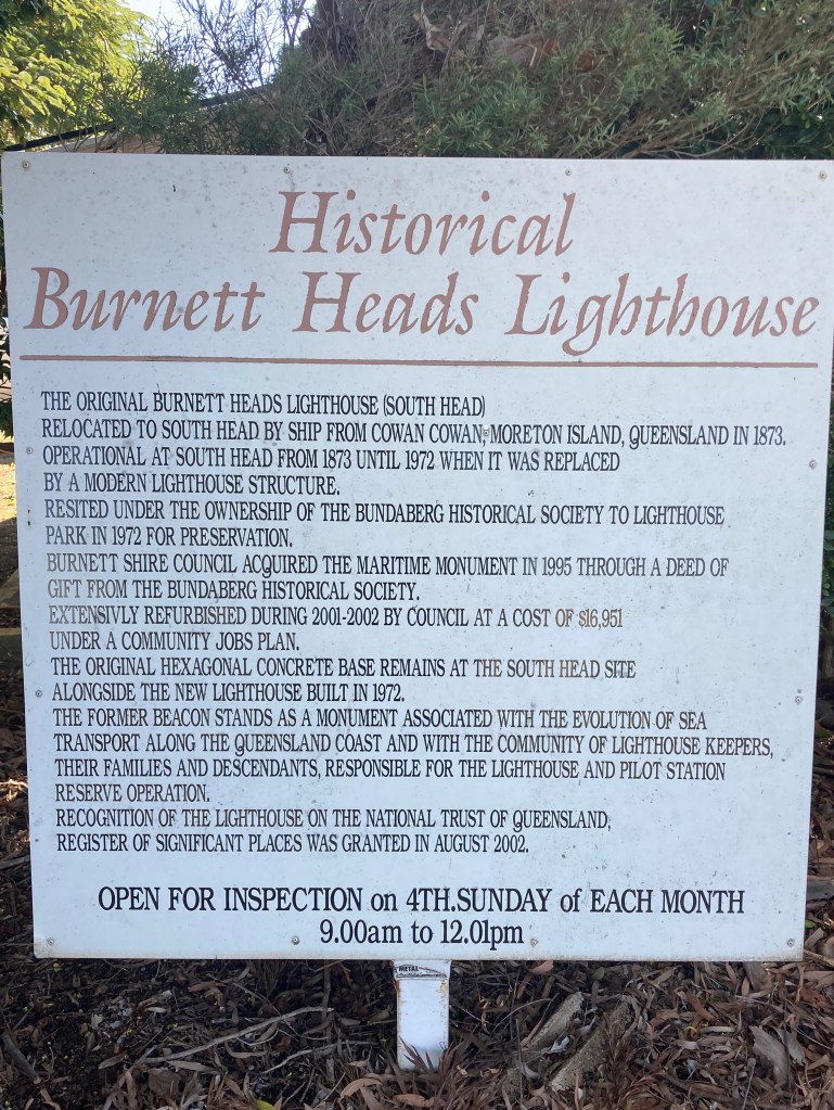 We recently had an ‘overnighter’ at Burnett Heads Lighthouse Caravan Park and our motorhome site was almost in front of this pretty little lighthouse. Thank goodness it has been decommissioned and is now an historical icon in the area!
