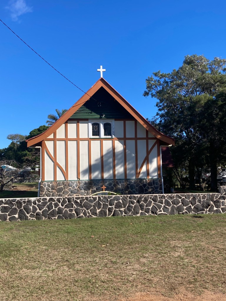 Such an unusual design in a semi tropical beachside area of Australia. Perhaps it’s design was influenced by its sponsor, Christian Mittelheuser, who donated the land?