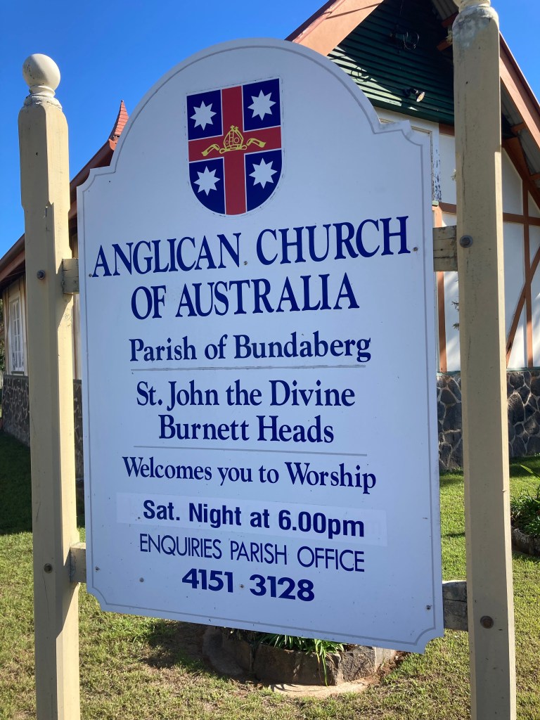 This little church is just outside the entry to the Lighthouse Holiday Park in Burnett Heads, Queensland.