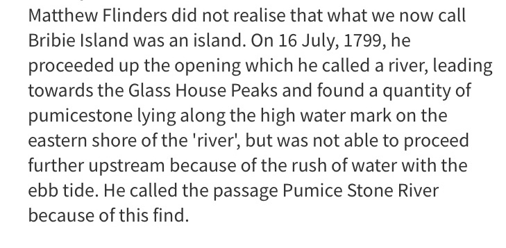 The stretch of water between Bribie Island and the mainland is Pumicestone Passage, a popular spot for boating and fishing. I had wondered if there was actually pumice stone there that gave it its name and sure enough this is what I discovered.