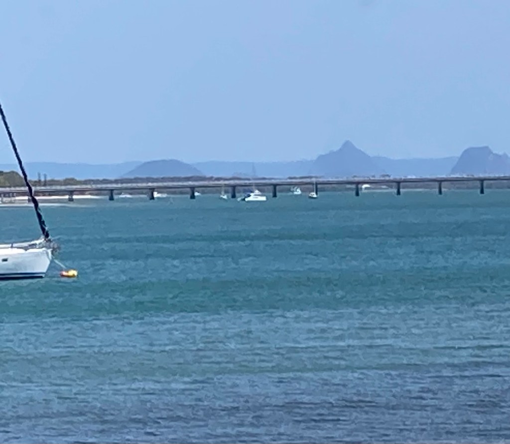 When we looked towards the bridge the Glass House Mountains were peeping over the top, a reminder that Dave’s home was not too far away.