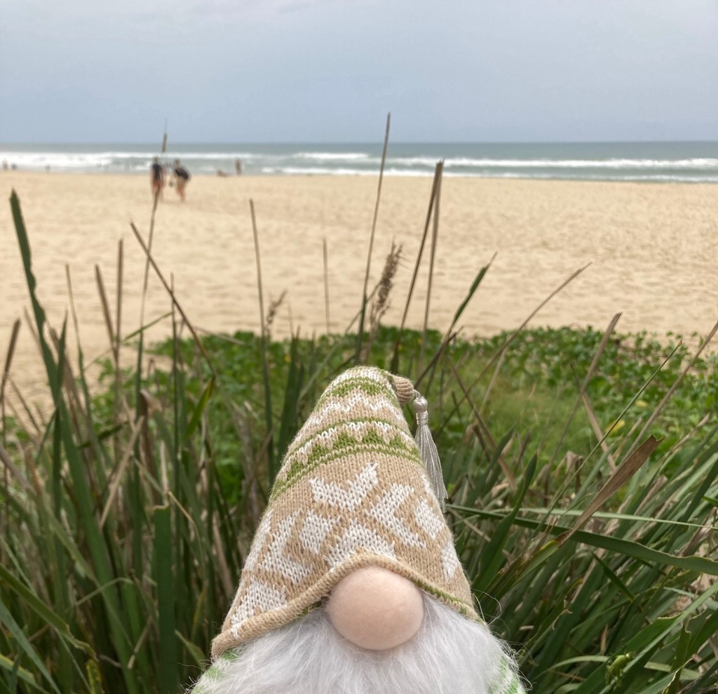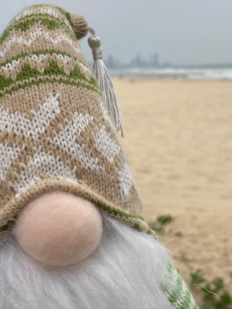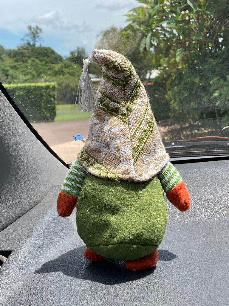Grimple’s first journey began at Glass House Mountains on the Sunshine Coast of Queensland. We pulled out of the driveway on our way to the Gold Coast and this is where Grimple got his name! You see, he’s a gnome with a dimpled bottom and somehow ‘gnome’ and ‘dimple ’ became Grimple 😊