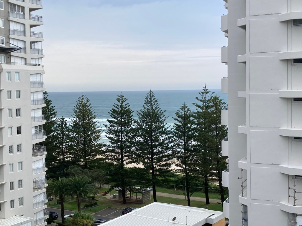 Well, he loves it down here on the Gold Coast! The view from the 10th floor of ‘Horizons’ at Burleigh Heads is spectacular and the social life is amazing!
