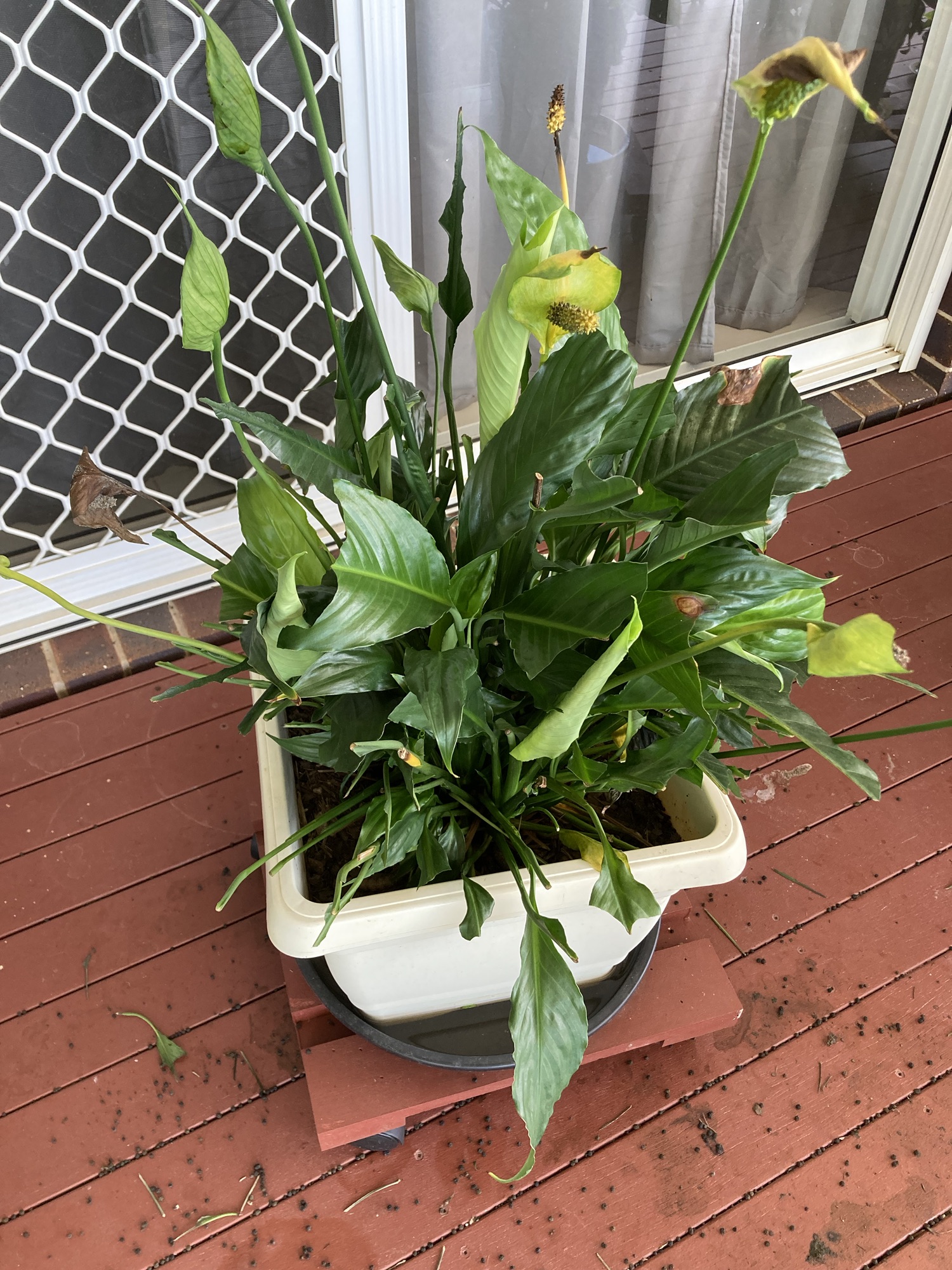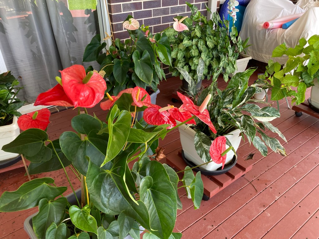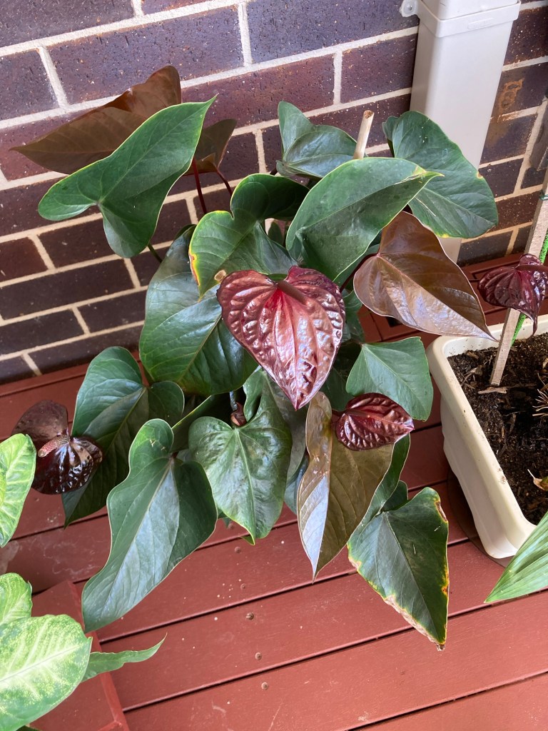 The Bad … well , all those pretty butterflies we admired laid eggs that turned into giant caterpillars that munched their way through the Peace Lily leaving a trail of devastation.