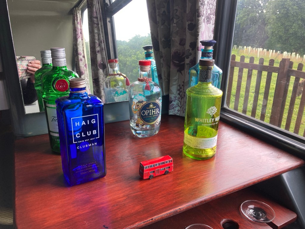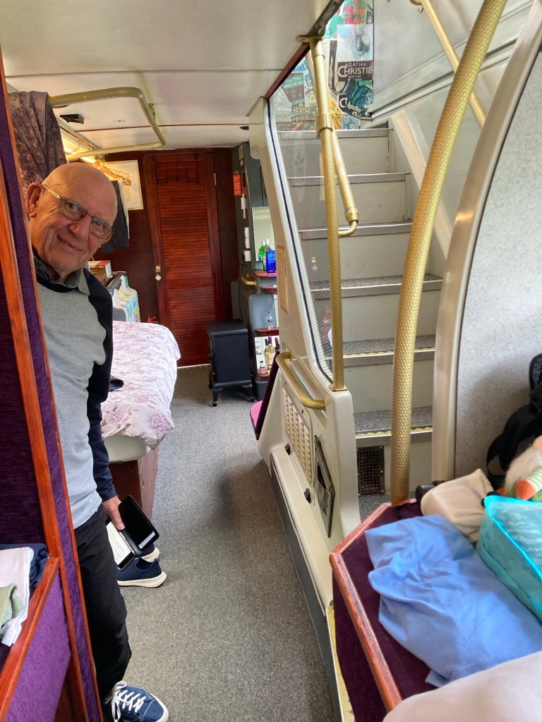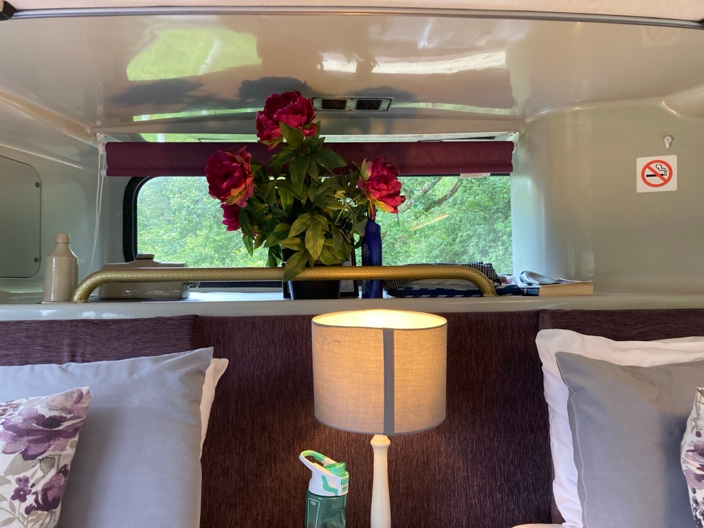 Around the interior of the bus where once there would have been advertising and travel information it is now adorned with poster of Agatha Christie’s books and there is a library of them in the bus too.