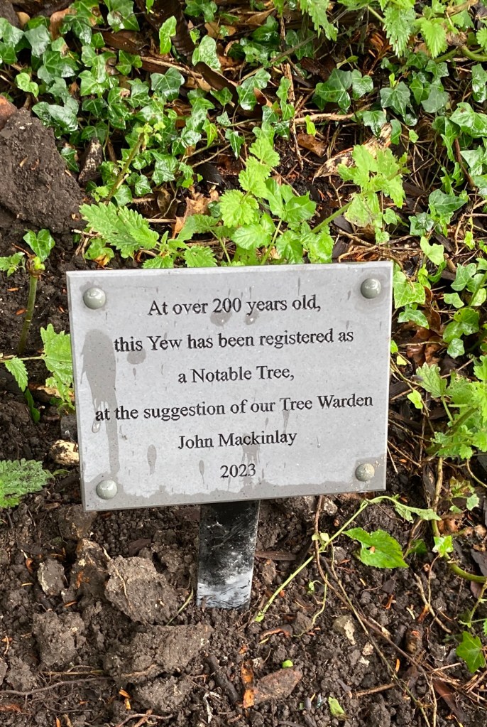 A 200 year old yew tree stands proudly along our village walk. In 2023 it was declared to be a notable tree.