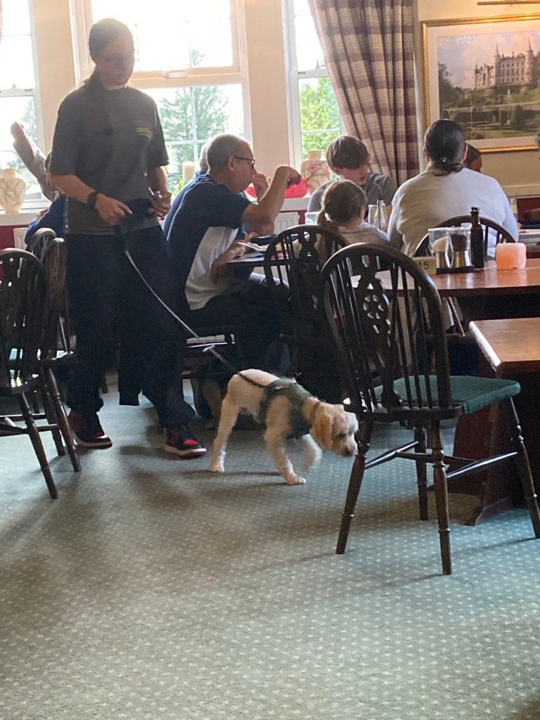 We were escorted to a comfortable table amongst other diners … and their dogs!🐕 This was not an outside dining area, it was a formal carpeted room! I’ve been amazed at how dogs are allowed everywhere… and how many there are! Every second person seems to have one.