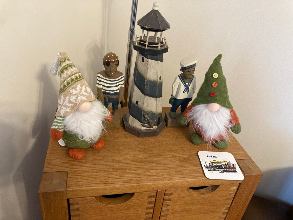 We drove down an alley between two shops and saw this ugly brick building- no lighthouse to be seen! Oh well, let’s check it out! Appearances certainly are deceptive because inside was a very comfortable 2 bedroom apartment decorated everywhere with, you guessed it, lighthouses!