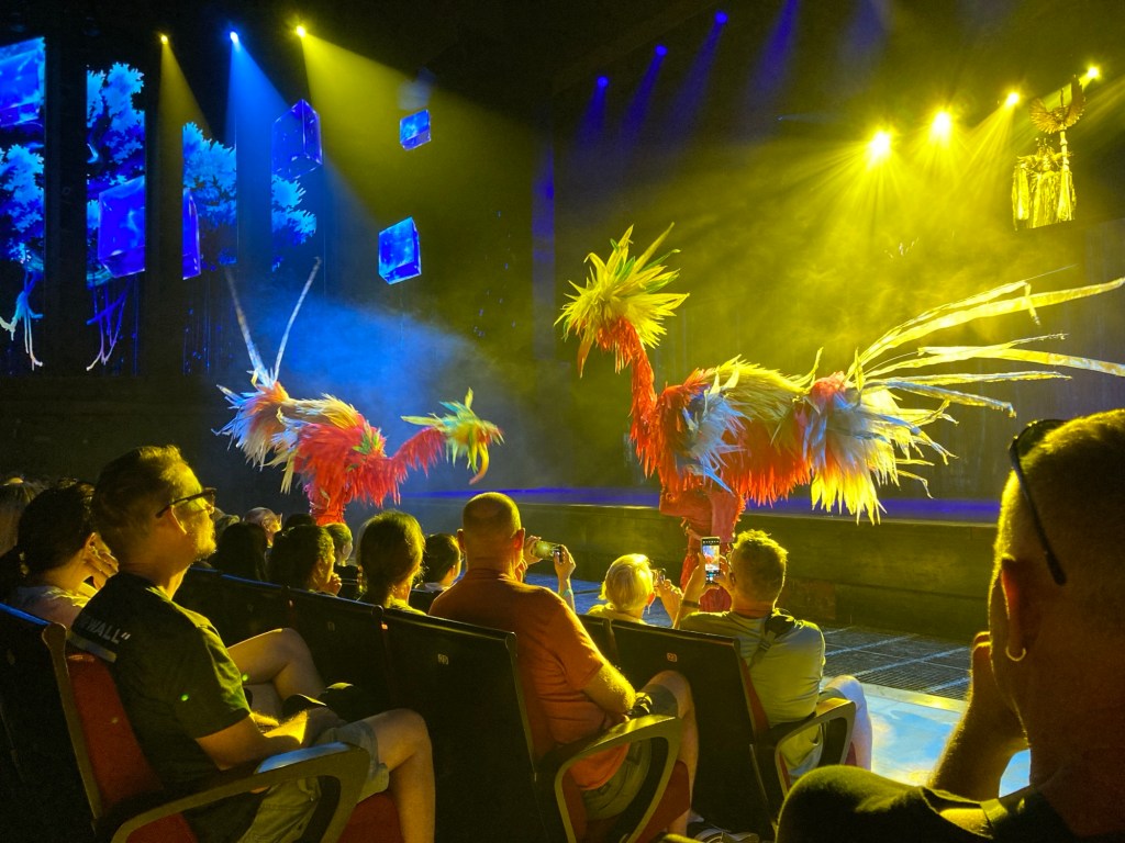 It wasn’t only the show that made the evening so special. As we waited to enter, who should appear but my cousins Geoff and Lyn! We knew they had booked a similar holiday but out of 26 million people imagine us meeting up here.