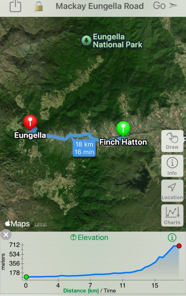 We left the Showgrounds for the steep winding drive to Eungella with the fuel gauge hovering between a quarter full and empty- and no fuel available in Finch Hatton. Only 18kms – should be enough 😳🤞