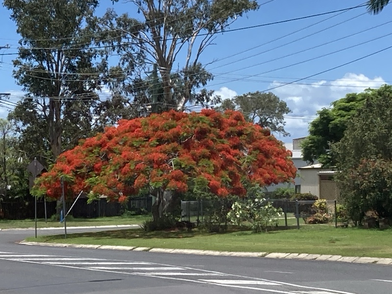 Poinciana trees in a blaze of colour