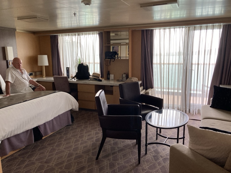 There was a huge balcony, a lovely sitting area and a personal welcome to Mr & Mrs – let’s call them “Smith” That’s when we knew we were in the wrong room 😳 Uh Oh!
