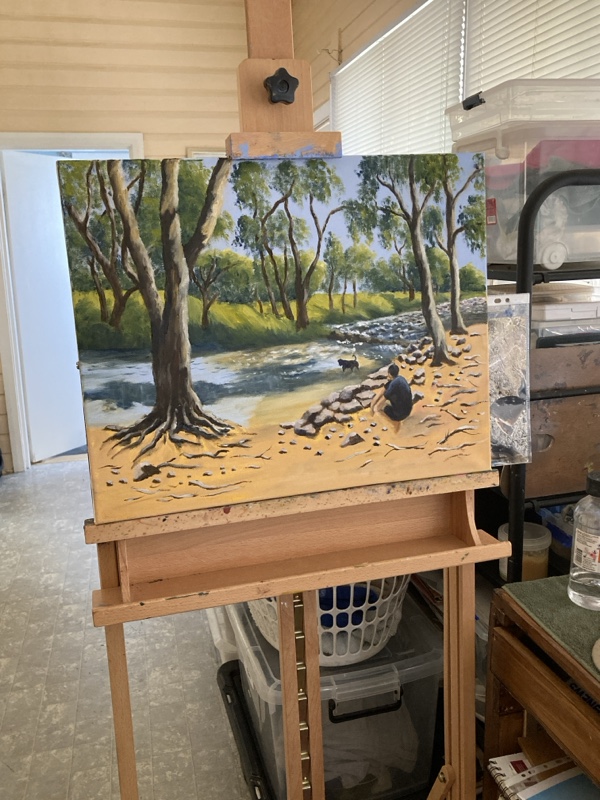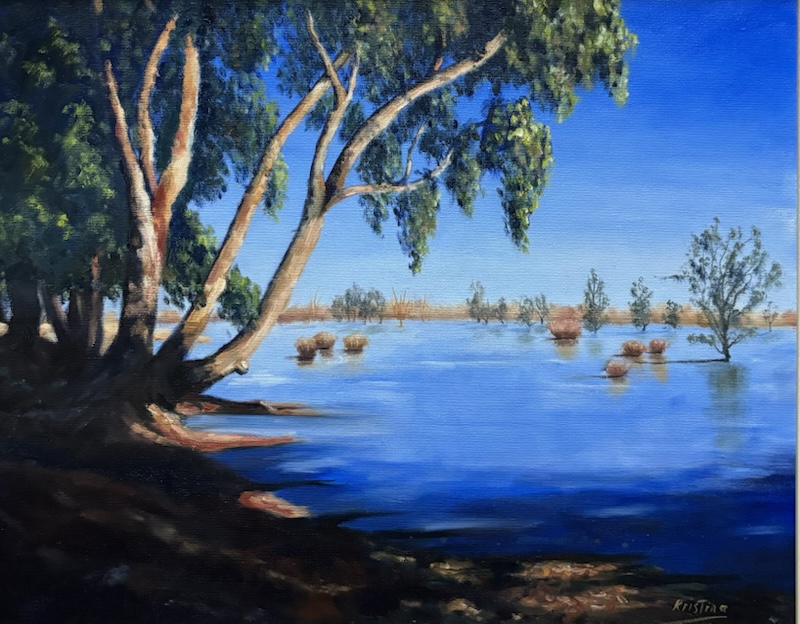 Krissi moved here from Melbourne mid last year to be closer to her son and the countryside is proving a constant inspiration for her paintings.