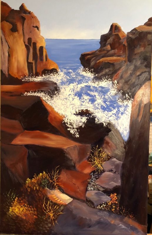 Unfortunately Cranky Rock was more inspiring as a story than a painting! The story goes that it got its name from a cranky Chinese man who was so offended by a local lady that he killed her then went off to this rocky outcrop and committed suicide to evade being captured by police.