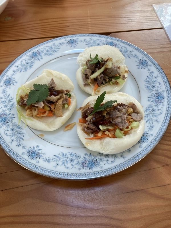 Then these buns arrived like soft fluffy clouds. I wish I could remember all the delicious ingredients to make your mouth water too but …