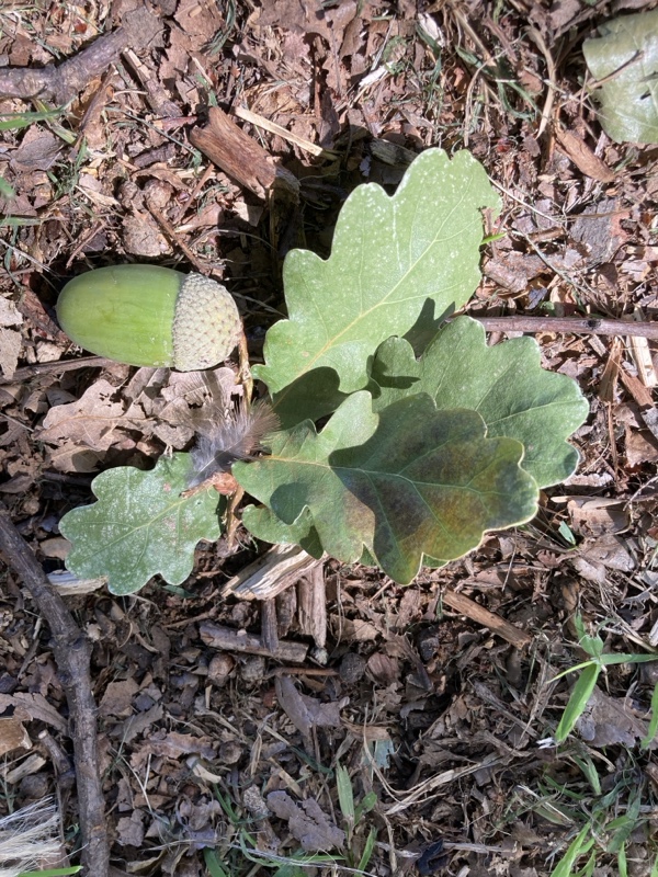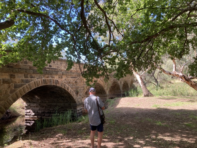 Magnificent oak trees frame the entrance to this simple building which is nestled beside an historic stone bridge