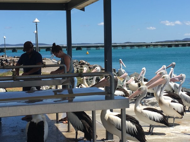 Australia New South Wales travellingfish cleaning pelicans solo travelling Tuncurry